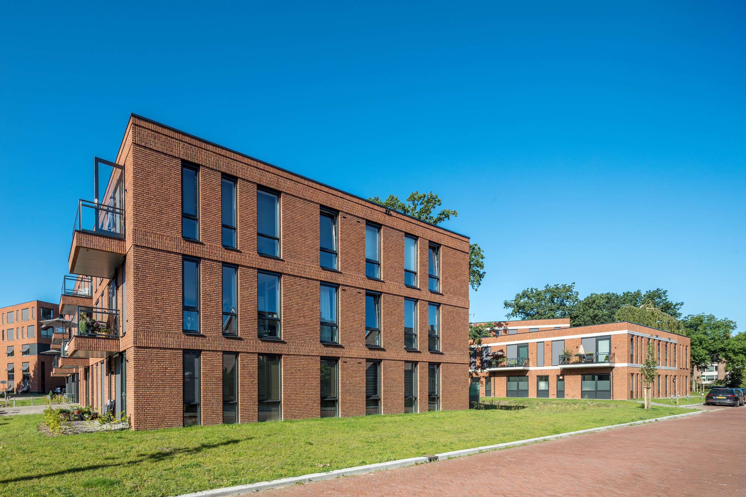 De woningen hebben 1 of 2 slaapkamers. De keuken is volledig ingericht met inbouwapparatuur en de badkamer heeft een douche, toilet, (brede) wastafel en een designradiator. Sommige appartementen hebben ook nog een separaat toilet. De woningen hebben een buitenruimte in de vorm van een balkon of terras en een berging in de woning. De appartementen zijn levensloopbestendig, met brede gangen en deuren, een drempelloze indeling en een lift.