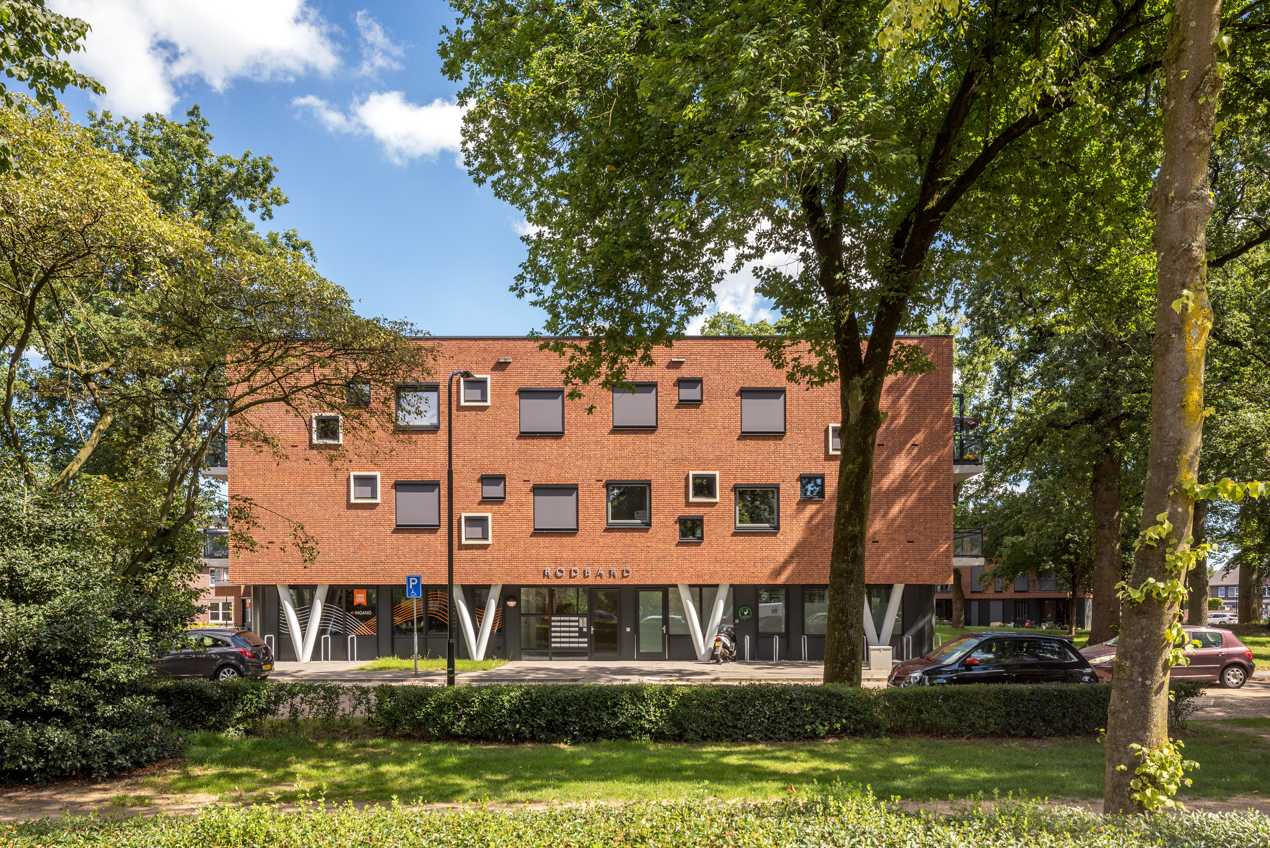 Op de begane grond van zowel gebouw Rodbard als Vlaanderen is een stalling voor fietsen en een aantal parkeerplaatsen voor scootmobiels.