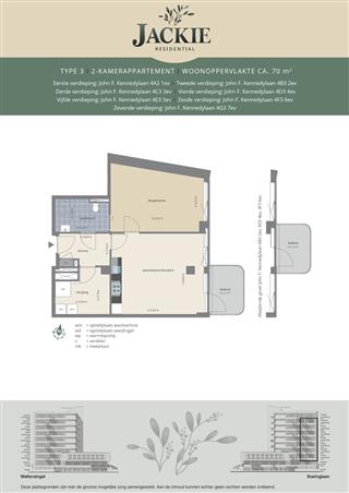 2-kamer appartement met een woonoppervlakte van 70 m2, moderne keuken met A-merk inbouwapparatuur en betegelde badkamer met douche, wastafel met spiegel, vloerverwarming, designradiator, toilet. Jackie is gelegen Apeldoorn in Sprengenbos, vijf minuten fietsen van het centrum en In directe omgeving van groen en stadse voorzieningen. Er zijn in 7 woningen met deze type.