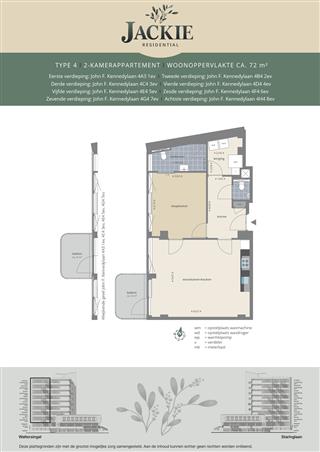 2-kamer appartement met een woonoppervlakte van 72 m2, moderne keuken met A-merk inbouwapparatuur en betegelde badkamer met douche, wastafel met spiegel, vloerverwarming, designradiator, toilet. Jackie is gelegen Apeldoorn in Sprengenbos, vijf minuten fietsen van het centrum en In directe omgeving van groen en stadse voorzieningen. Er zijn in 8 woningen met deze type.